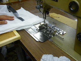 手取りピンタック加工は、1本1本手でとっていきます。山の高さやタックからタックまでの幅を変える事も可能です。後工程で、ピンタックを寝かせる作業が必要です。