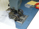 4本の針で穴とかがりをしながら、進んでいきます。その動きやタイミングは絶妙で、調子をとるのが難しいですが、縫っていてとても楽しいミシンです。
