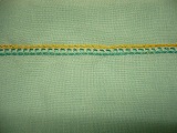 この加工は単独として使う場合と、メローをかけた後、ピコット加工を施したりと何かとよく使うミシンです。糸を替えることで、雰囲気も変わるミシンです。